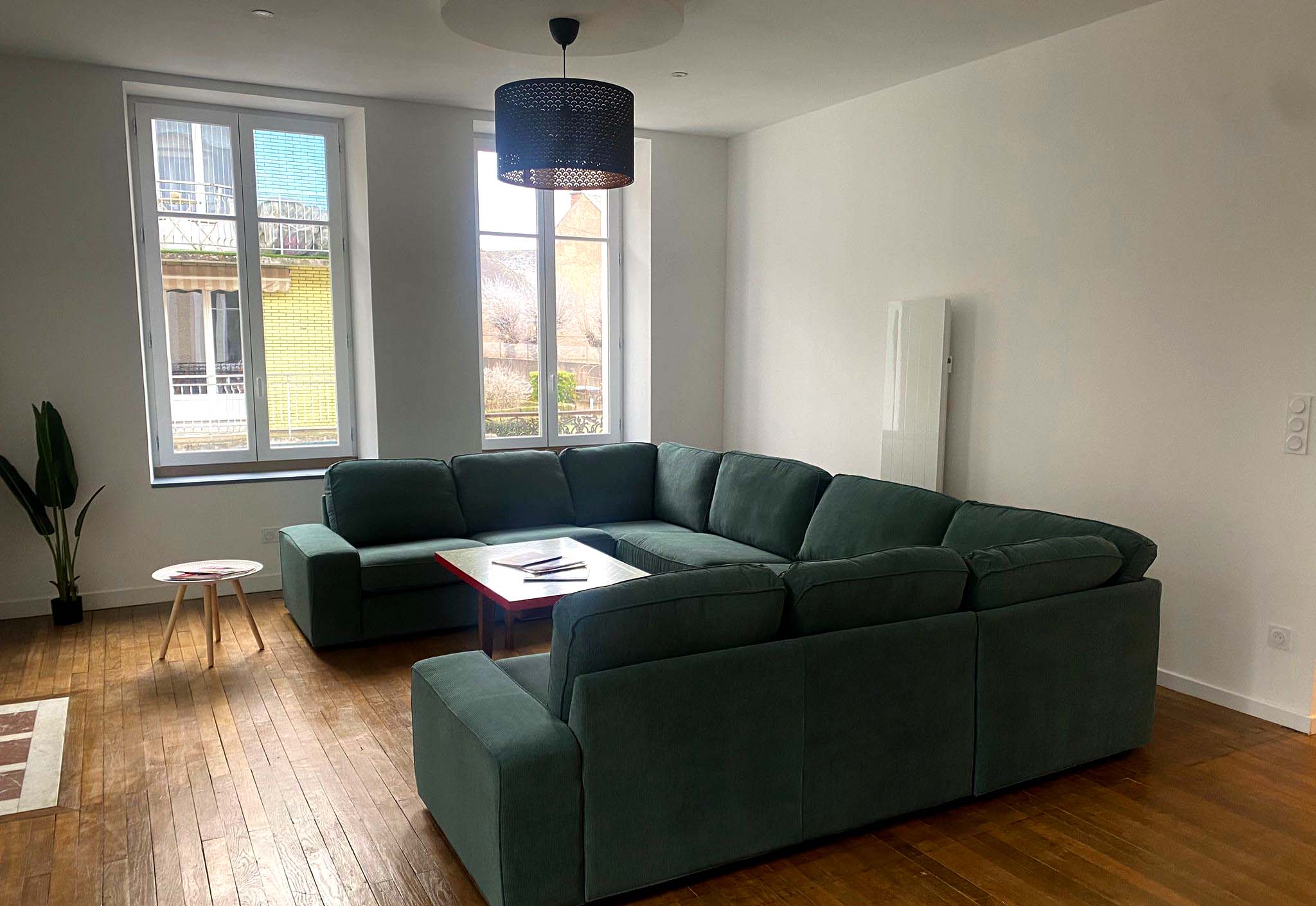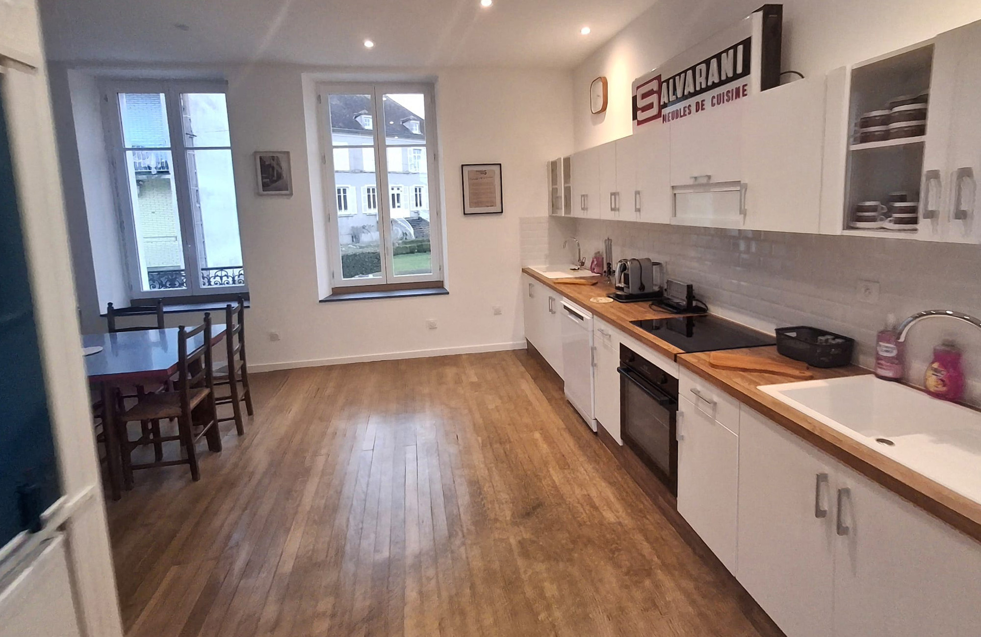 Aux portes du Morvan, appartement de caractère sur 2 étages (200m2) rénové à neuf propose 5 chambres entièrement meublées (Lit double, bureau, penderie).